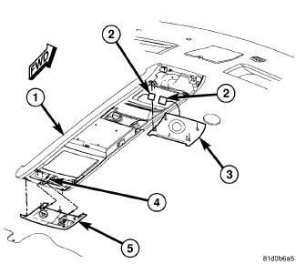 5. Remove the four screws (2) to the overhead console (two in the front and two in the back).