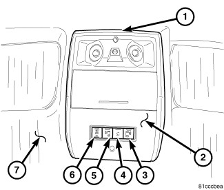 4. Lower the overhead console far enough to access the wire harness connectors.