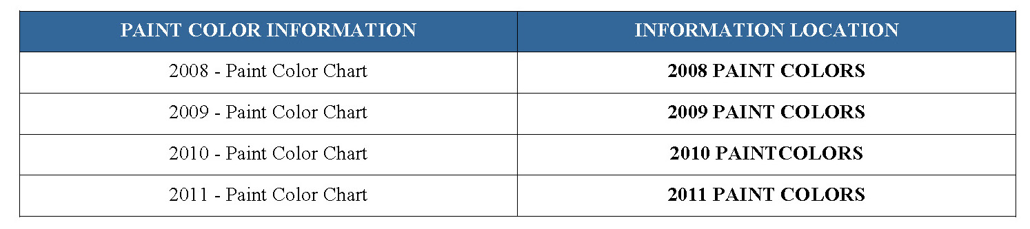 2011 PAINT COLORS
