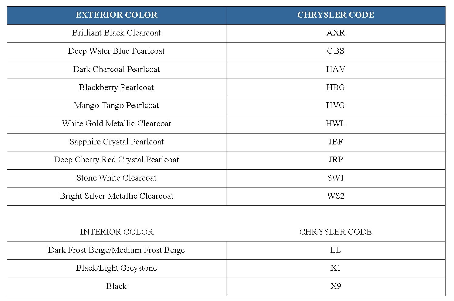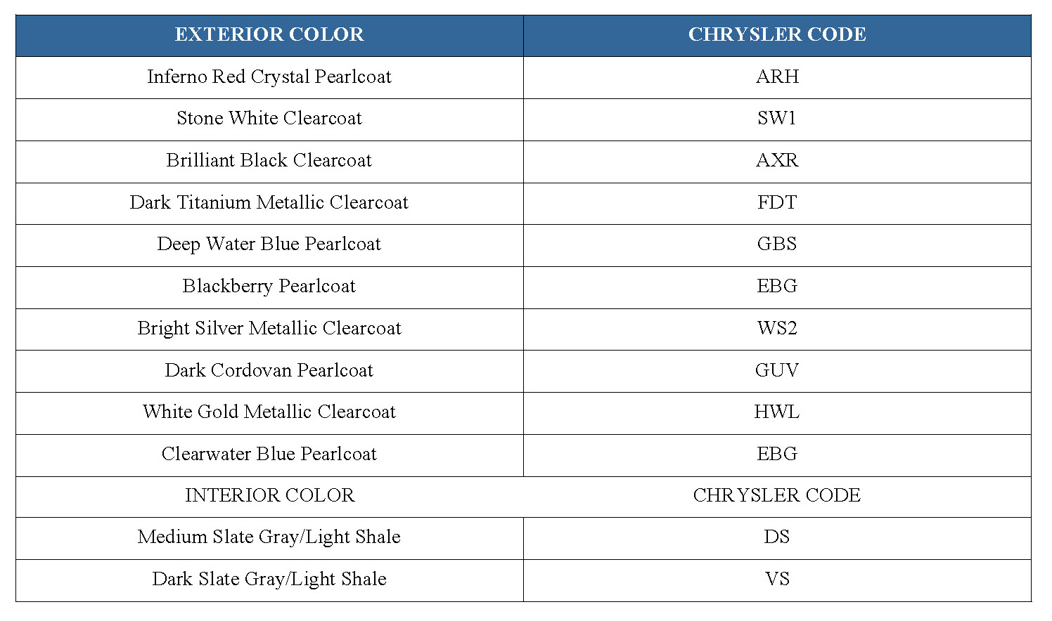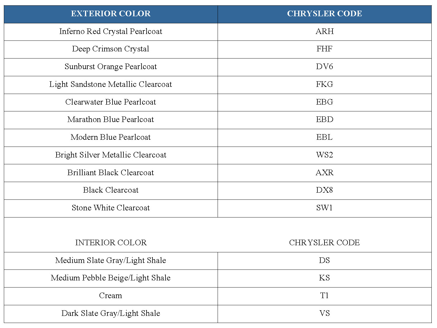 The first digit of the paint code listed on the vehicle indicates the sequence of application, i.e.: P = primary coat, Q = secondary coat. The color names provided in the Paint and Trim Code Description chart are the same color names used on most repair product containers.