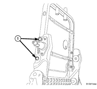Position the seat back frame and install the retaining bolts (1). Tighten the bolts to 48 Nm (35 ft. lbs.).