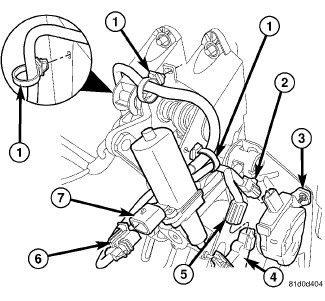 7. Connect wiring connector (6) at adjustable pedals motor (7).