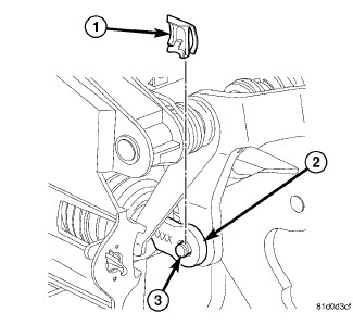 5. Slide booster push rod (2) onto brake pedal pin (3). Install NEW retaining clip (1) securing push rod to brake pedal.