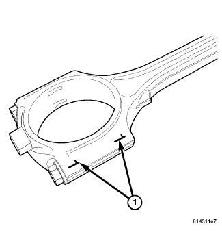 The bearing caps are not interchangeable or reversible, and should be marked (1) at removal to ensure correct reassembly. Cracked bearing caps stay with the cracked rod. The bearing shells must be installed with the tangs inserted into the machined grooves in the rods and caps. Install cap with the tangs on the same side as the rod. For connecting rod bearing fitting Service and Repair. Fit all connecting rods on one bank until complete.