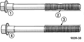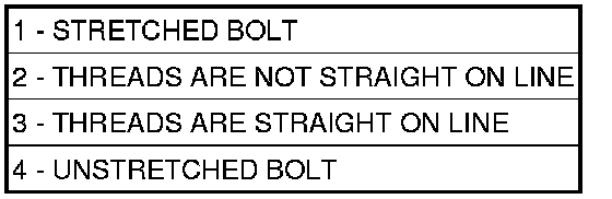NOTE: The connecting rod cap bolts (4) should be examined before reuse. Bolt stretch can be checked by holding a scale or straight edge against the threads. If all the threads do not contact the scale (2) the bolt (1) must be replaced.