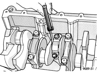 3. Tighten the cracked cap bolts to 7 Nm (5 ft.lbs.) initially. Tighten the bolts an additional 21 Nm (15 ft.lbs.) and then turn each bolt 90° to final clamping load.
