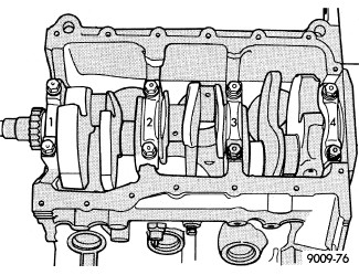 NOTE: The total clearance of the main bearings can only be determined with the engine in the vehicle by removing the weight of the crankshaft. This can be accomplished by either of two following methods: