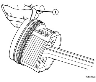2. Check piston ring to groove side clearance (1). For clearance specification Engine Specifications