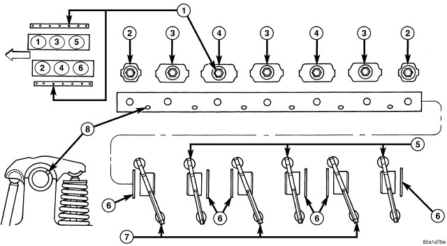 2. Remove rocker arms (7). Identify the component locations for reassembly in original locations.