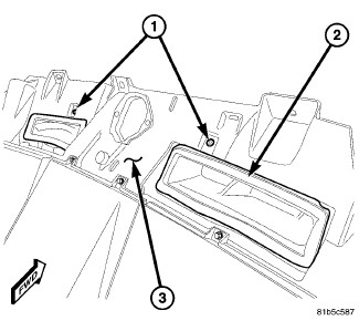 4. Install the two screws (1) that secure the defroster duct (2) to the top of the instrument panel cover (3). Tighten the screws to 2 Nm (17 in. lbs.).