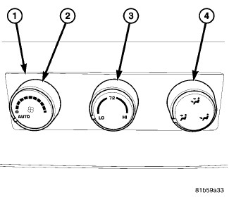 - a rotary control knob for fan speed selection and turning the rear heating-A/C system off or to Auto mode (2).