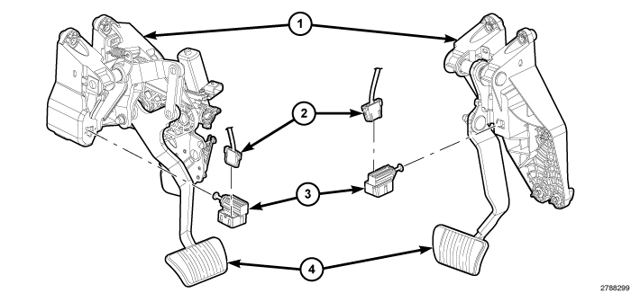 4. Align the keyed locking collar on the brake lamp switch with the keyed square hole in the brake pedal mounting bracket (1).