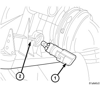 1. Install the inlet air temperature sensor (1) to the air box (2) by turning the sensor 1/4 turn in the clockwise direction.