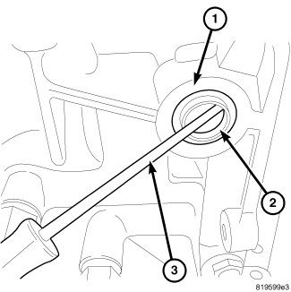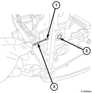 4. Remove the roll pin (3) at the TRS/rooster comb (1) using a pin punch (2).
