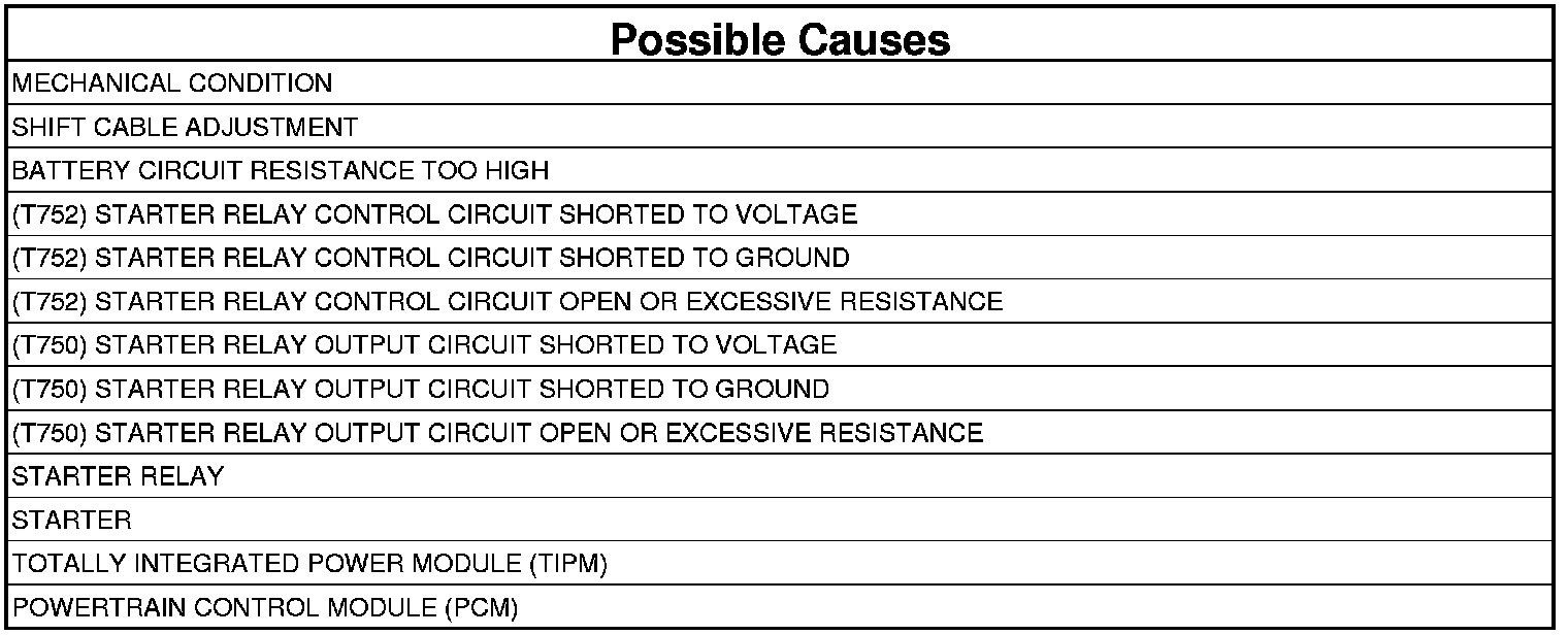 12. (T752) STARTER RELAY CONTROL CIRCUIT OPEN OR EXCESSIVE RESISTANCE