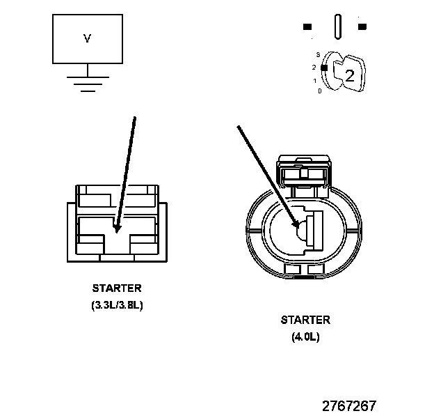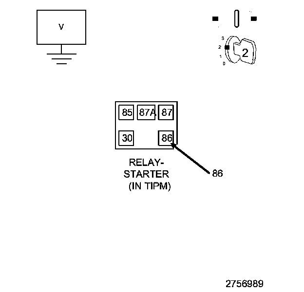 2. Measure the voltage between the (T752) Starter Relay Control circuit and ground.