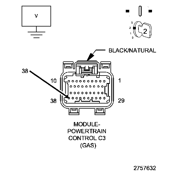 4. Measure the voltage between the (T752) Starter Relay Control circuit and ground in the PCM harness connector.