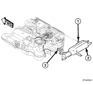 5. Install vapor canister bracket bolt (1). Tighten to 54 Nm (40 ft. lbs.).