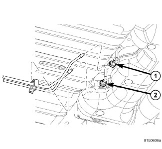 9. Connect fuel line quick connect fitting (1) and evaporator hose quick connect fitting (2).