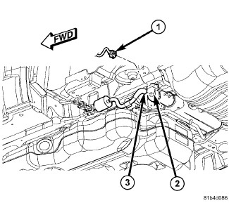 2. Connect vapor canister quick connector (3) to fuel tank control valve.