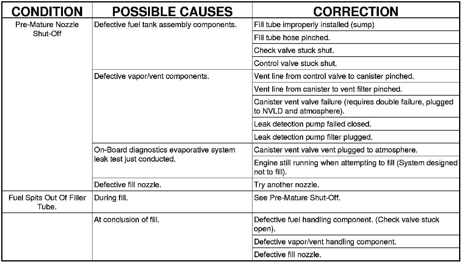VEHICLE DOES NOT FILL