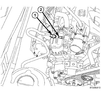 7. Connect the quick connect fuel line (1) to the fuel rail (2).