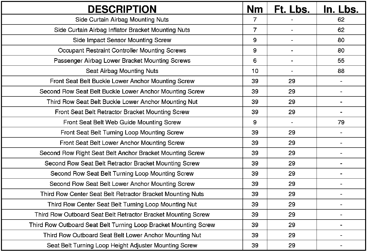 TORQUE SPECIFICATIONS