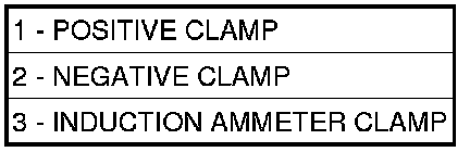 1. Connect volt-ampere tester (1) and (2) to battery terminals. See instructions provided by manufacturer of volt-ampere tester being used. Note: Certain diesel equipped models use dual batteries. If equipped with dual battery system, tester should be connected to battery on left side of vehicle only. Also, tester current reading must be taken from positive battery cable lead that connects to starter motor.