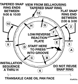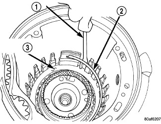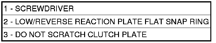 20. Install low/reverse reaction plate flat snap ring (2), insure you do not scratch clutch plate (3).