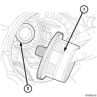 33. Install front carrier/rear annulus assembly (2) and number six needle bearing (1).
