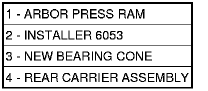 10. Install rear carrier bearing cone (3) using Installer 6053 (1).