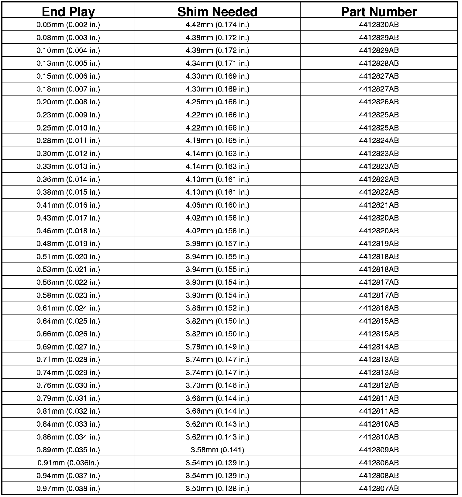 f. Refer to the output gear bearing shim chart for the required shim to obtain proper bearing setting.