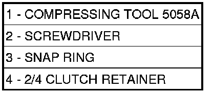 29. Using Compressing Tool 5058A (1), compress 2/4 clutch return spring just enough to install snap ring (3).