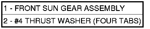 34. Install front sun gear assembly (1) and number four thrust washer (2).