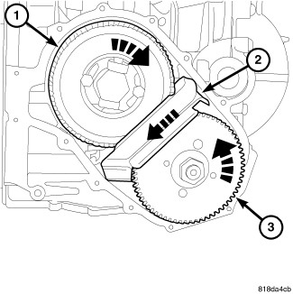 73. Install compounder End Play Tool 9951 (2) through the hole in the front case.