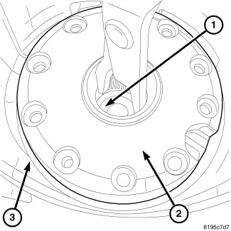58. Install the differential output bearing cover bolts (1) and tighten to 12 Nm (105 in. lbs.).