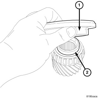 43. Install number one caged needle bearing (1) note: tanged side out (2).