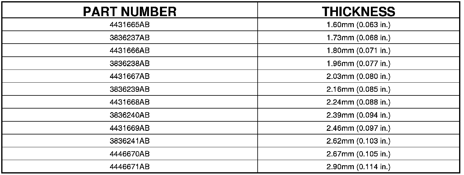 41. Refer to the number four thrust plate chart NO. 4 THRUST PLATE CHART to select the proper number four thrust plate.