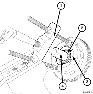 15. Using puller C-293-PA (1), C-293-47 Adaptors (2) and Press Plug C4487-1 to remove the large pinion bearing.