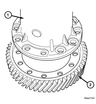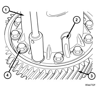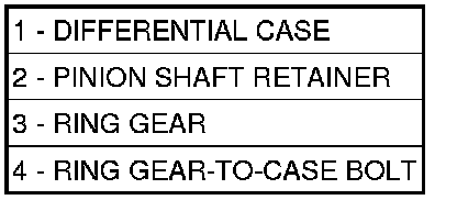 3. Remove ring gear-to-differential case bolts (4) and floating pinion shaft retainers (2).