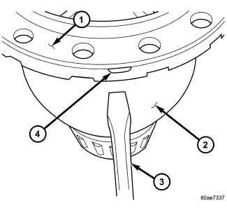 5. Separate differential cover (1) from case (2) using suitable screwdrivers at position.