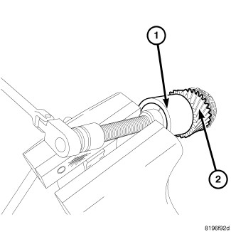 14. Using Remover 8356 (1) and a 12mm hex head bolt as a press plug remove the small pinion bearing.