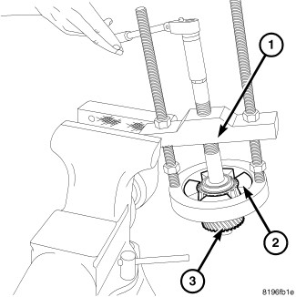 1. Use Puller Set C-293-PA (1), Adaptors 9613 (2) and press plug 9678 remove the pinion side bearing cone (3).