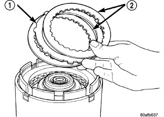 35. Install reverse clutch pack (two frictions/one steel) (1,2).