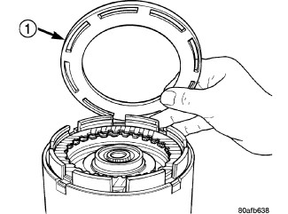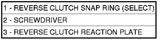 38. Tap reaction plate (3) down to allow installation of the reverse clutch snap ring (1) Install reverse clutch snap ring (1).