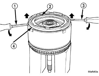 39. Pry up reverse reaction plate (4) to seat against snap ring (2).