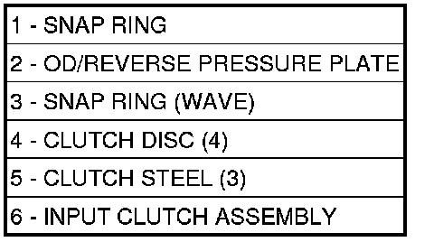34. Take average of four measurements and compare with OD clutch pack clearance specification. The overdrive (OD) clutch pack clearance is 0.491-2.345 mm 0.019-.092 in.