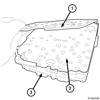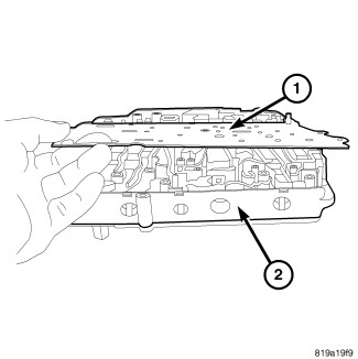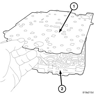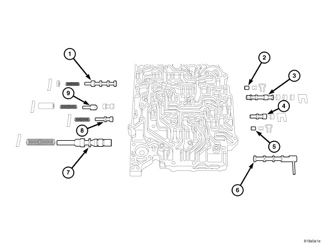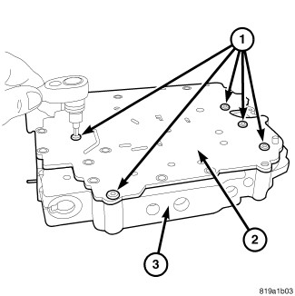 NOTE: The valve body contains some check balls that are pressed into a tapered bore (1). These check balls are not removable