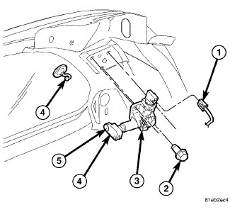 3. Snap the actuator link socket (4) onto the quarter window ball socket (4). Using a soft rubber mallet, push the circular link tab (5) flush with link surface.