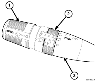- Front Wiper Control - The multi-function switch control knob provides detent switching for two front continuous wipe switch positions, LOW speed or HIGH speed and an intermittent wipe mode with five DELAY interval positions. The control knob also has a front momentary MIST or pulse wipe feature switch position.